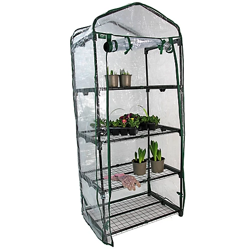 This offer is for a 4 tier Greenhouse with a clear PVC cover. Ideal for use outdoors in garden or on your patio or balcony. Protects plants from winter chill and spring frosts. Maintains a consistent temperature for essential and healthy growing.