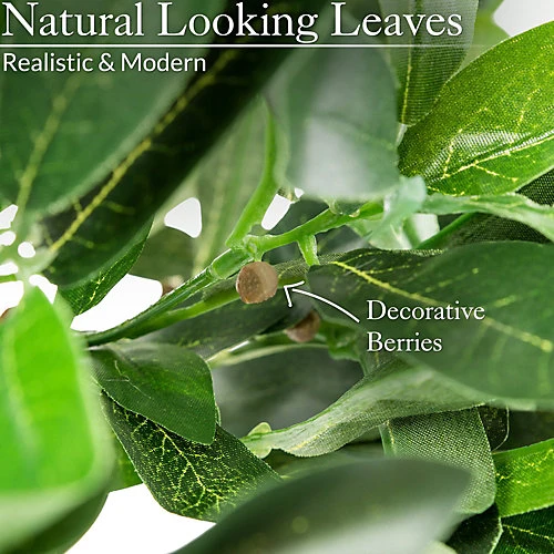 - Beautifully designed with a double-twisted wooden trunk, lush green polyester leaves and gorgeous brown and black berries for a luxury look and authentic feel