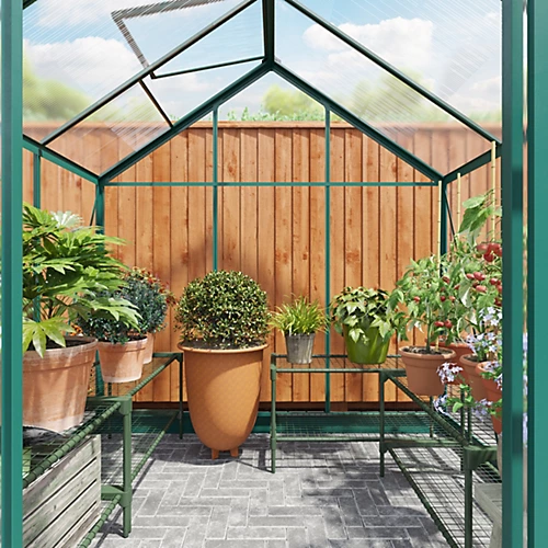 With a tall roof and a sliding door the Rosette is ideal for any gardener. All round glazing allows light in all day and an integrated vent allows you to control the temperature.