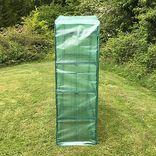This greenhouse provides extra space for hardening off plants at the beginning of the season. Measuring 120cm wide, the shelves are 50cm deep – so plenty of space for tender seedlings.
