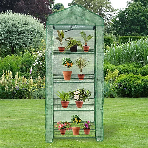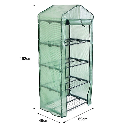 Give your plants the best start in life with this greenhouse with PE cover. Conveniently tall and with 4 tiers, there is plenty of room to organise your plants while they grow strong enough to weather the outdoors. The waterproof PE cover gives you great visibility of your plants, whilst protecting them from the elements and harmful UV rays.