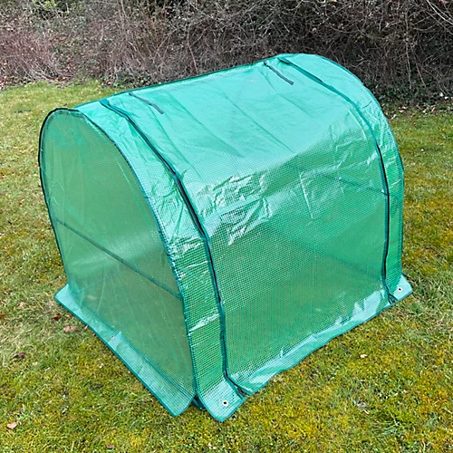 This grow tunnel offers the perfect protection for your raised bed crops. A tubular steel frame slots together using a series of plastic connectors and the reinforced polyethylene cover fits snugly over the top. 4 metal pegs are included which can be pushed through the metal eyelets and into the soil, securing the grow tunnel to the ground. No tools are required for construction. The cover is secured to the frame with internal ties and features a zipped roll up front – with ties at the peak to allow the ‘door’ to be rolled up and held in place. Measuring 125cm in width and length, this mini greenhouse is the perfect addition to our wooden raised bed but will of course suit any raised bed or planter within these dimensions. At an impressive 100cm tall, your offerings have plenty of room to become established under the canopy.