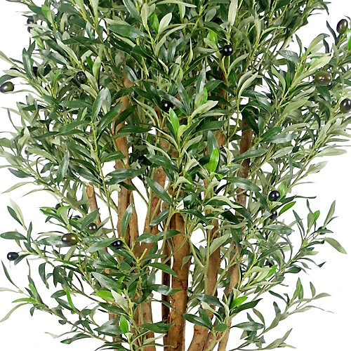 125cm Artificial Olive Tree with pot – part of our premium range of artificial plants and trees – these ones are virtually indistinguishable from real plants and are some of the nicest products we stock. Plant measures 125cm (h) x 60cm (w) as we have it arranged in our photos. The stems are wired and so this can be adjusted to fit your space perfectly. Multiple real wood stems and silk leaves. This also has highly realistic olives (please exercise caution when using in homes with small children as these do actually look edible). Comes fully potted in a moss covered weighted plastic pot which can either be left as it is or placed inside a decorative planter. The pot measures 18cm (w) x 15cm (h) approx. These plants look particularly impressive if they are put inside a larger planter and covered with bark- gravel or soil to add to the realistic effect.