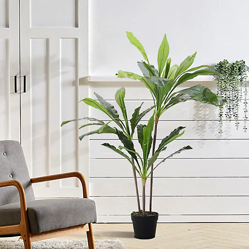 Elevate your interior decor with the Artificial Potted Asplenium nidus from Livingandhome. Standing at a height of 105cm, it exudes an aura of grandeur and sophistication. The rich green leaves, flawlessly replicated, create a sense of lush abundance.Whether placed in a living room, office, or foyer, this lifelike alocasia tree becomes an instant focal point, breathing life and tropical charm into your surroundings.