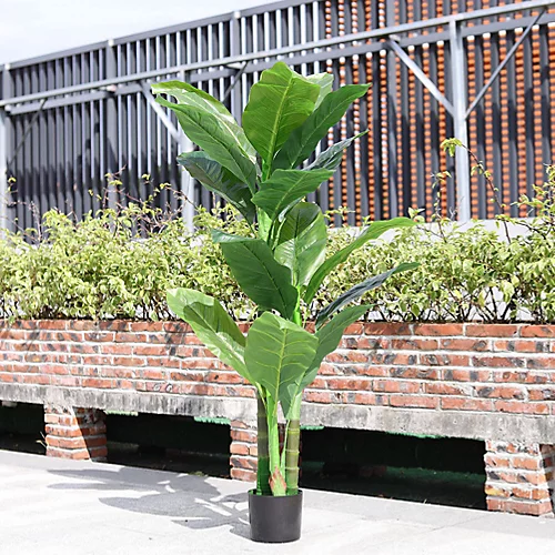 Looking for something to liven up your room or office? Our beautiful Livingandhome fake tree performs the job perfectly. This tree mimics a real one in every detail. From the wide green leaves, brown trunks to the moss grass, the tree is vigorous. Made of high-quality plastic, the tree is long-lasting and real-touching, there’s no need for maintenance only if it gets dusty.