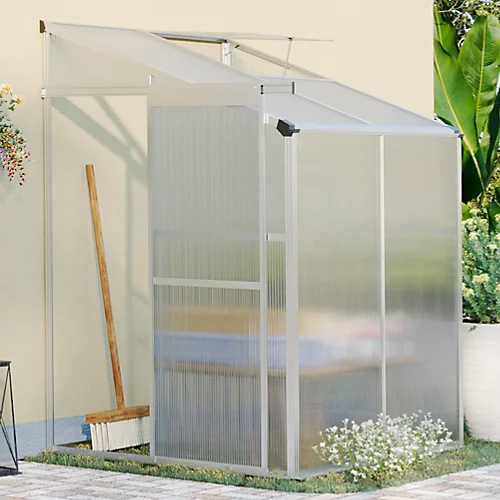 This lean to greenhouse was made of UV-resistant and all-weather polycarbonate panels ensure the safety of settling the greenhouse outdoors.Classic lean-to appearance of it is makes for an attractive addition to your garden.Frame was made of lightweight aluminum .the aluminum Frame and polycarbonate structure makes the assembly easier. Side-sliding door of this greenhouse allows you to keep a fully open environment for the greens.Comes with foundation makes sure the greenhouse is well-grounded and therefore enhances stability.