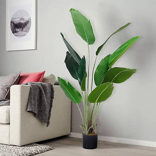 With its characteristic rich green foliage, our artificial potted banana tree will add colour and vitality to your space. The leaves of this plant are perfectly designed to give a complete, realistic look, and it never wilts. An artificial banana tree is easy to maintain as it does not require any care or water, so you can free your hands to just enjoy the wonderful greenery. This decorative artificial plant is made of high-quality plastic, making it very durable.