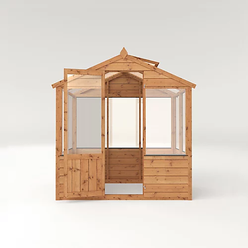 Made in the UK, using ethically sourced FSC certified timber, our 4 x 6 Wooden Greenhouse is ideal for smaller gardens while providing a great space for growing a variety of flowers and vegetables throughout the year. The traditional and stylish greenhouse features UV resistant styrene glazing and an opening roof vent, creating a bright and well ventilated interior. The lower section of the greenhouse walls are constructed using premium horizontal interlocking tongue and groove boards with a shiplap profile.