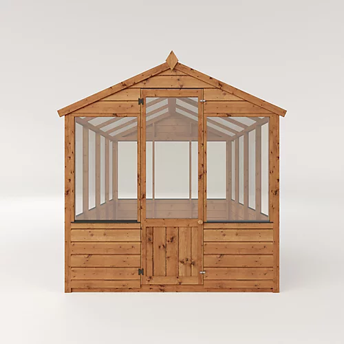 The Mercia 8 x 6 Wooden Greenhouse is great for those looking for a traditional and stylish building, great for those looking for a spacious place for potting and growing a range of plants and produce. Featuring UV resistant styrene glazing and an opening roof vent, the interior is light, bright and well ventilated. This greenhouse is made in the UK, using ethically sourced FSC certified timber to ensure a high quality build. The lower section of the greenhouse walls are constructed using premium horizontal interlocking tongue and groove boards with a shiplap profile.