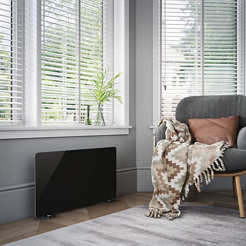 Heat up all the parts of the room radiators do not reach with this small but impactful tempered glass heater. Heat up all the parts of the room radiators do not reach with this small but impactful tempered glass heater. Comfort, economy, and anti-frost are the three fixed heating modes also featured with the Ebony Glass Panel Room Heater, so you can get your room temperate just right!