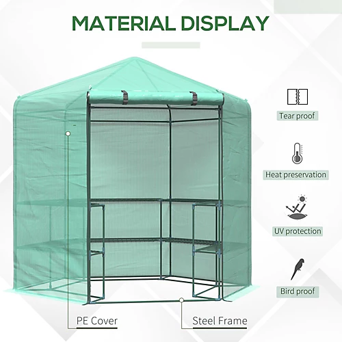 - WALK-IN GREENHOUSE: Unique hexagonal design makes the space more spacious. Designed with flower shelves, which can provide ample storage space. Ideal for early seeding and improved plant growth.