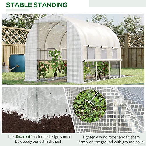 - Roll-up doors and window: Easy to enter and leave this polytunnel greenhouse, as well as let air inside whenever you want. Zipped door for security.