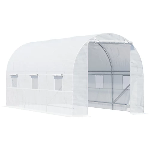 This Outsunny 4.5 x 2 x 2m garden polytunnel greenhouse is perfect for year-round gardening. Features a durable polyethylene covering with grid threading and a sturdy Galvanised Steel Tube frame. Our poly tunnels with door is great for seeding, or just to protect your young plants from cold. Thisplastic greenhouse walk in design brings the protective surroundings that you need, without spending large amounts of money needed for a purpose built greenhouse.