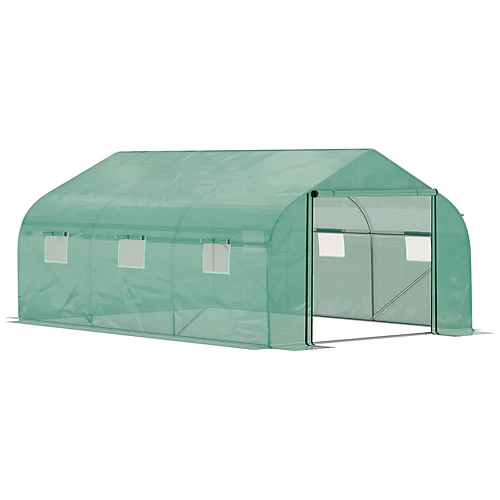 This Outsunny 15x10ft greenhouse is perfect for every gardening enthusiast, who is looking for a way to stay in the soil all year round! The garden polytunnel greenhouse offers all the protection your plants need to thrive without having to spend a great deal of green yourself. The steel frame and PE cover create a safe, protective shelter for all your plants. The six windows, with netting, allow fresh air inside, whilst the roll-up door gives easy access.