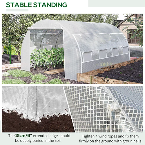 - STURDY STRUCTURE: Constructed with strong galvanised steel frame with 4 extra slant supporting bars for added stability. Overlong cover design makes this plastic greenhouse more airtighted and secure, just bury it in the soil, easy way but useful.
