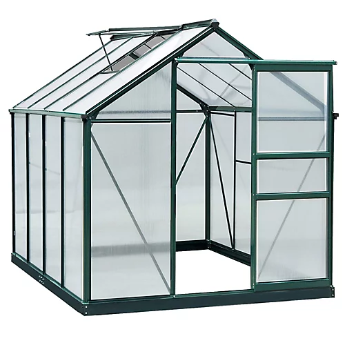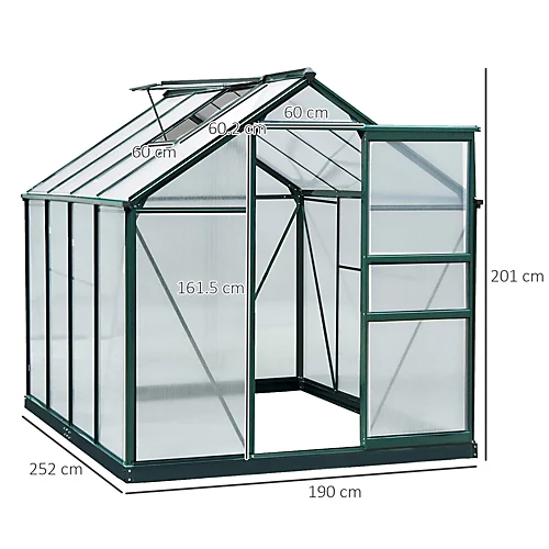 The Outsunny polycarbonate green house is perfect for the home gardening enthusiast. The walk in greenhouse’s powder-coated aluminum frame and UV-resistant sheets will keep your plants, vegetables, and more safe. Heavy duty greenhouse’s rooftop vent ensures excellent ventilation for your unit. A convenient single sliding door design provides easy access to the transparent greenhouse inside. Our Outsunny outdoor greenhouse is the ideal solution for keeping your plants healthy throughout the year.