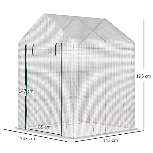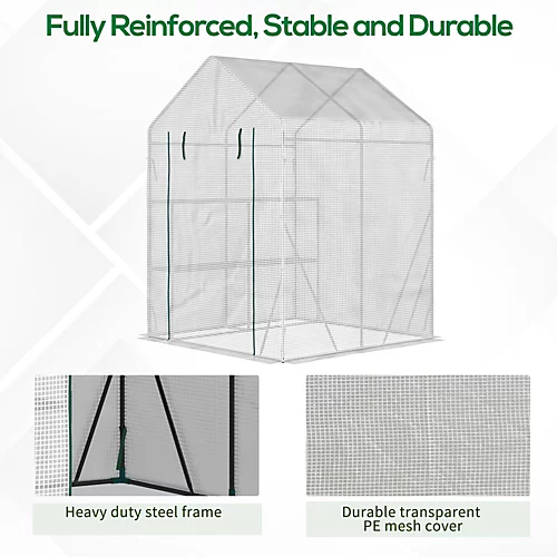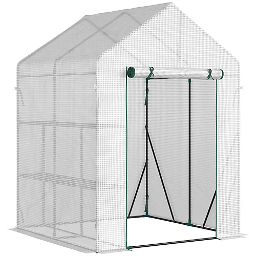 Get this portable greenhouse from Outsunny to extend your growing season by protecting plants from cold and birds. It comes with a steel frame for a steady core. The PE cover creates a protective shell, holding in the heat and shielding from wind and rain. The roll-up door, with zip fastening, allows you to enter and leave to access your plants at any time. Simply put up, go and grow. Do not leave standing in heavy weather conditions.
