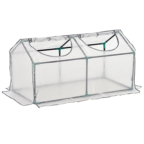 – Mini greenhouse for growing almost anywhere – porches, patios, balconies and other garden and outdoor spaces; – Zipped windows roll up to stay in place; – PE plastic cover for protection light wind, rain and birds; – 10cm extended to bury into soil; – Grey edge banding for stronger cover and durability; – Assembly required;