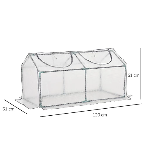 NOTE: Not suitable for bad weather conditions. - – Item Name: Greenhouse; – Brand Name: Outsunny; – Materials: Steel, PE; – Colour: White; – Dimension:120L x 60W x 60H cm ; – Semicircular Window Size: 46W x 28H cm; – Assembly Required: YES; – Item Label: 845-368V02WT;