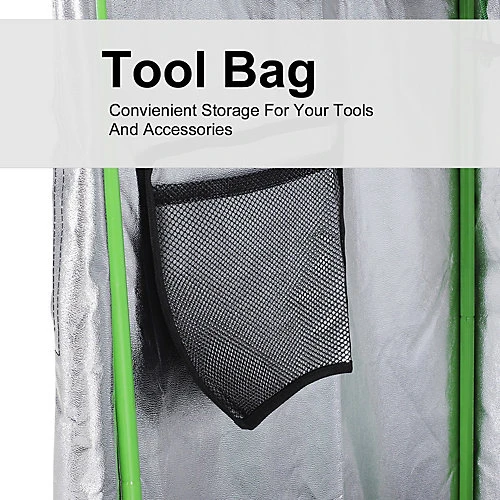 – Lined with reflective mylar blocking light from escaping and retaining heat; – Tear-proof oxford fabric with double stitched to stop pests getting in the indoor grow tent; – Reinforced steel frame keeps grow light box stable and secure; – Velcro-sealed high intensity mesh vents; – Vents with spring buckles to adjust the size; – Large heavy duty zippers for protection against light leaks; – The ventilation openings in the upper corner to handle cables and for air circulation; – Detachable waterproof floor tray for easy cleaning;
