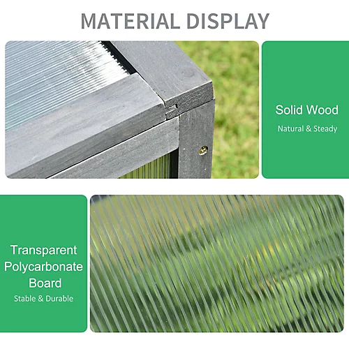 - EFFECTIVE PROTECTION: Transparent polycarbonate board cold frames for garden keeps your plants warm and protects them from light wind and light rain. This mini greenhouse wooden can also extend growing season and offers ideal temperature for your lovely plants.