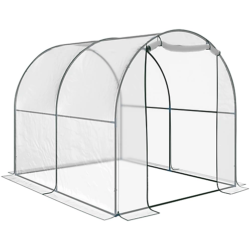 – Walk-in tunnel greenhouse to extend the growing season of your plants; – Durable Transparent PVC cover; – Dark green powder coated steel tube, hardy and durable; – Full ground bar and support bar on both sides, stable and sturdy; – Zipped roll up door is convenient for access, and useful for natural ventilation; – Wind ropes and ground nails for extra stability;; – Assembly required.