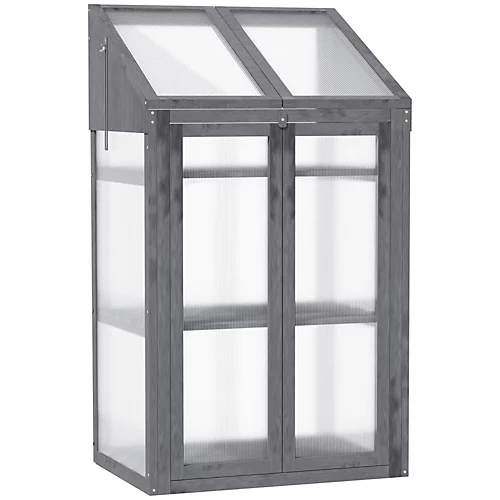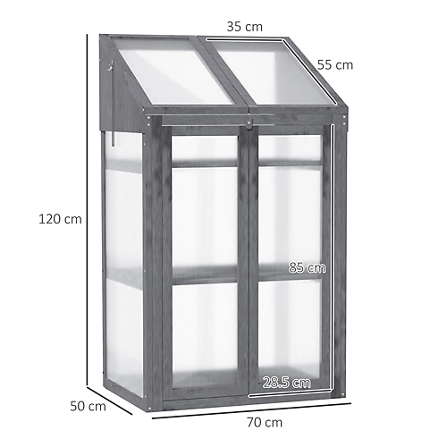 This cold frame greenhouse, from Outsunny, is a great choice to care for your plants. Solid fir wood frame for reliability. Transparent polycarbonate panels allow maximum light transmission, whilst retaining heat for early seed sprouting or for protecting plants late in the season. Features three removable shelves for organising plants. This plant grow house creates an ideal-temperature environment, so plants can grow healthily.