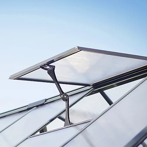 - Comes with Twinwall polycarbonate glazing panels, aluminium frame, manual vent, gutters, Hinged door, base and step-by-step assembly instructions.