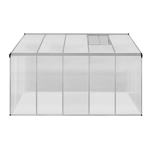 The stunning galvanised aluminium frame creates a durable structure whilst the shatterproof polycarbonate panels ensure the vegetables and plants inside are protected year-round in all weather conditions. Plastic connectors between each of the aluminium poles aid a more robust framework while the polycarbonate sheets are pit mounted for a sturdier fit. The transparent finish of the twin wall glazing allows natural sunlight to pass through whilst diffusing harmful UV rays for excellent growth. Weather resistant properties make sure this greenhouse will maintain its effectiveness and attractive appearance for years to come.