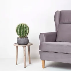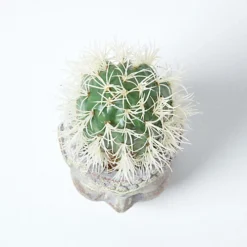 Homescapes Echioncactus Artificial Cactus In Decorative Buddha Head Stone Pot, 24 Cm Tall