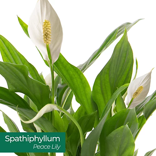 Spathiphyllum Peace Lily is a popular and elegant houseplant known for its glossy, dark green leaves and distinctive white flowers. It is highly valued for its ability to purify indoor air and its adaptability to various light conditions. The Peace Lily is a versatile and low-maintenance plant that adds beauty and a sense of tranquility to any space.