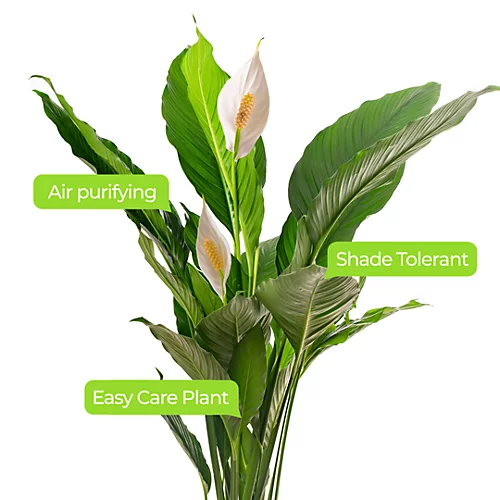 Spathiphyllum Peace Lily is a popular and elegant houseplant known for its glossy, dark green leaves and distinctive white flowers. It is highly valued for its ability to purify indoor air and its adaptability to various light conditions. The Peace Lily is a versatile and low-maintenance plant that adds beauty and a sense of tranquility to any space.