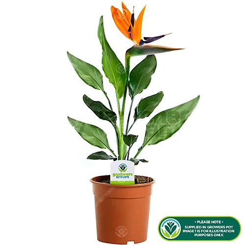 Strelitzia nicolai Bird of Paradise (40-50cm) is a majestic plant known for its impressive height and large, striking leaves, which add a tropical touch to any space. This stunning plant produces exquisite white and blue flowers that resemble a bird in flight, enhancing its beauty even further. With its easy care and low maintenance requirements, Strelitzia nicolai is an ideal choice for busy gardeners. It thrives in bright indirect light, making it suitable for both indoor and outdoor spaces, adding elegance to landscapes, gardens, and contemporary interiors. Plant this magnificent White Bird of Paradise in well-draining soil, and provide it with moderate watering, allowing the topsoil to dry between waterings.