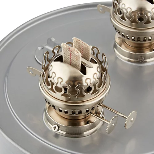 - Twin burner wick adjusters for variable heat settings