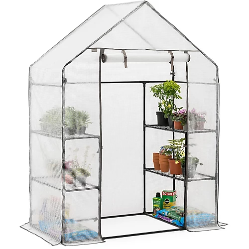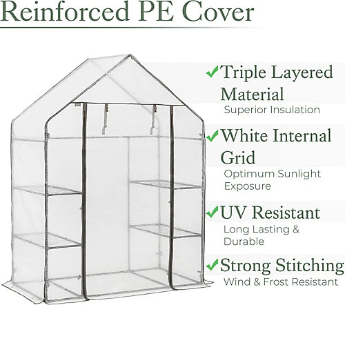 - Door can be unzipped, rolled open and secured with ties to easily water plants, regulate the temperature and encourage pollination
