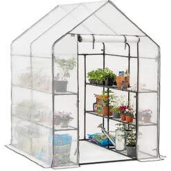 - Door can be unzipped, rolled open and secured with ties to easily water plants, regulate the temperature and encourage pollination