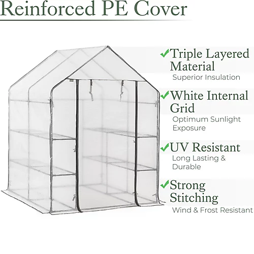 - Reinforced PE mesh cover is stronger and thicker than standard PVC to reinforce the frame and promote stronger, healthier growth