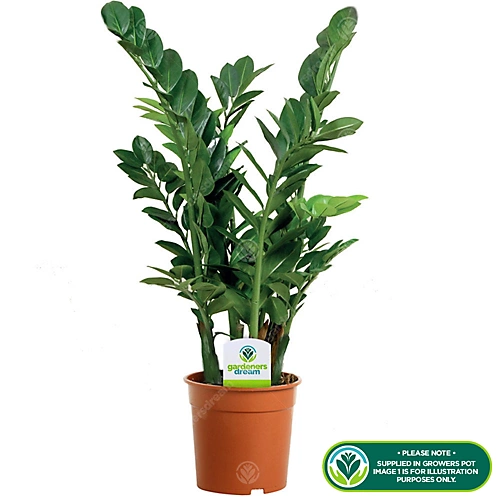 The Zamioculcas Zamiifolia (30-40cm) is a stunning houseplant that brings the beauty of the outdoors inside. Its lush and glossy dark green foliage adds a touch of nature to any indoor space, making it a delightful addition to both homes and offices. This low-maintenance plant is perfect for busy individuals or beginners, as it thrives in low light conditions and is tolerant of irregular watering. With its air-purifying abilities, the Zamioculcas Zamiifolia not only enhances the aesthetics of your space but also promotes a healthier indoor environment. Whether placed in a well-lit office corner or a cozy living room with limited natural light, this plant is sure to thrive and bring a sense of tranquility to its surroundings. With its easy-care nature and stunning appearance, the Zamioculcas Zamiifolia is an excellent choice for plant enthusiasts of all levels.
